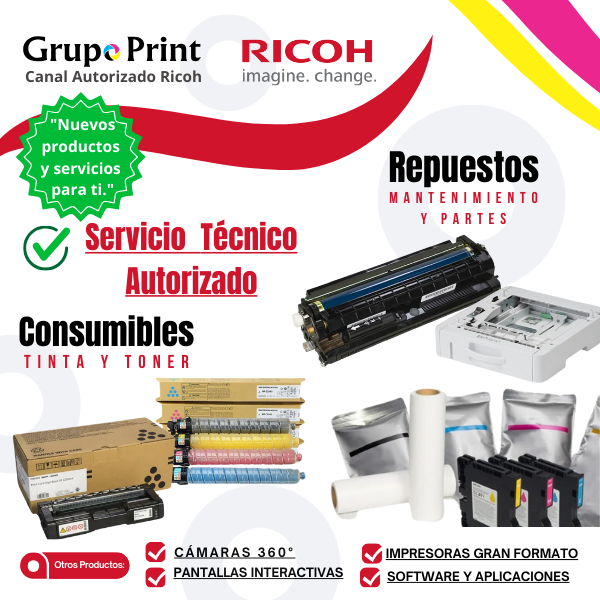 Grupo Print como canal autorizado Ricoh, te ofrecemos equipos y soluciones de impresión de última generación con garantía y soporte oficial. ¡Optimiza tu productividad hoy!